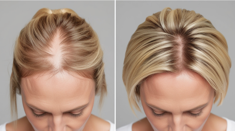Przyspieszony porost i zagęszczenie włosów. Zanik ognisk łysienia i przerzedzeń na skórze głowy.