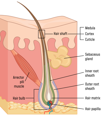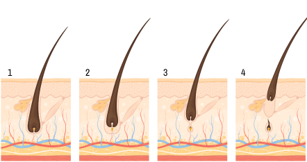 Wzrost włosa rozpoczyna się w mieszku – podłużnej macierzy, w której zakotwicza się cebulka włosowa. Mieszek rozwija się i rozciąga aż wyjdzie na powierzchnię skóry. Od tego momentu gołym okiem widzisz rosnący włos.